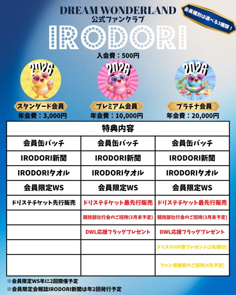 DWL公式ファンクラブ「IRODORI」2026年度の入会受付は、5月1日より開始いたします。